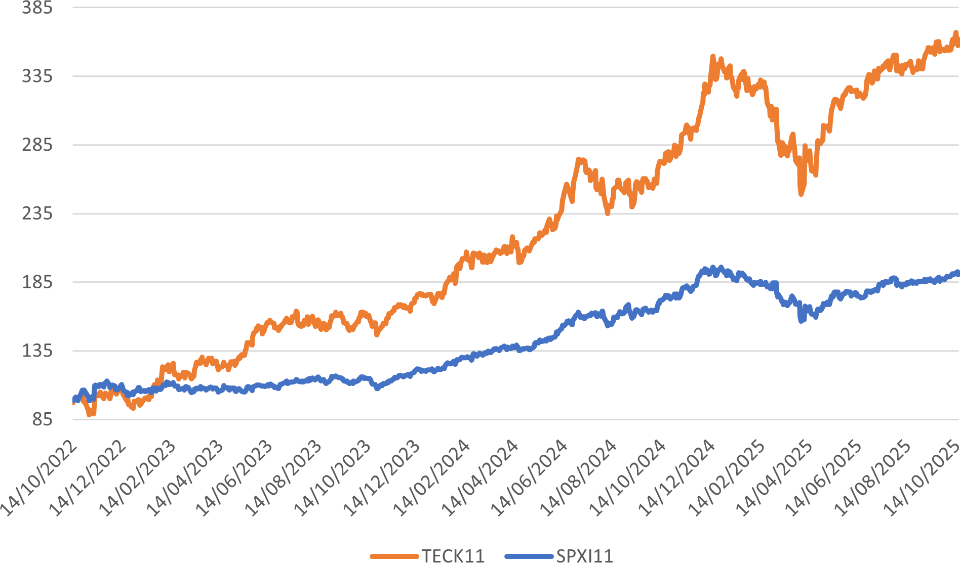 O caso do TECK11 é um bom exemplo. Lançado para capturar a revolução das empresas de tecnologia global, o ETF permitiu ao investidor brasileiro acessar, com simplicidade e custo baixo, nomes que estão moldando a economia digital: Nvidia, Microsoft, Alphabet e outras líderes em inovação. Em um momento em que a IA deixou de ser conceito e passou a ser infraestrutura, estar posicionado nesse tema significou acompanhar uma das transformações econômicas mais rápidas e profundas dos últimos anos.